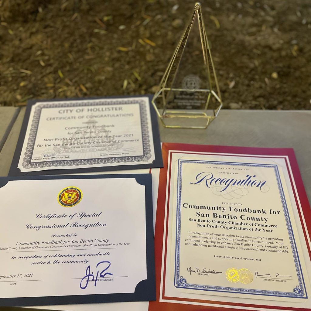We are so honored to be recognized at the Non-Profit of the Year with the Chamber of Commerce. The award event was well attended with staff, Board of Directors and some long term volunteers. One of our volunteers in attendance were part of the inception of the food bank shortly after the 1989 Loma Prieta Earthquake. The award goes out to every volunteer, customer, donor, grower, farmer, grocer, partner, agency, staff and board members who have had their hand in feeding the need over the last 30 years. Thank you!