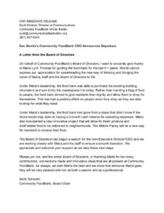 Press Release – San Benito’s Community FoodBank CEO Announces Departure 20200409
