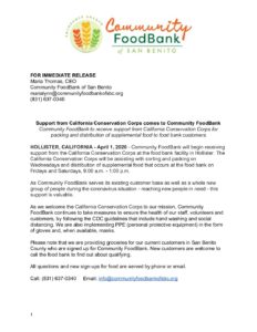 Press Release – Support from California Conservation Corps comes to Community FoodBank